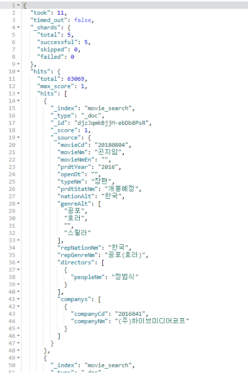 결과 (snapshot 명: movie-search, index명: movie_search)