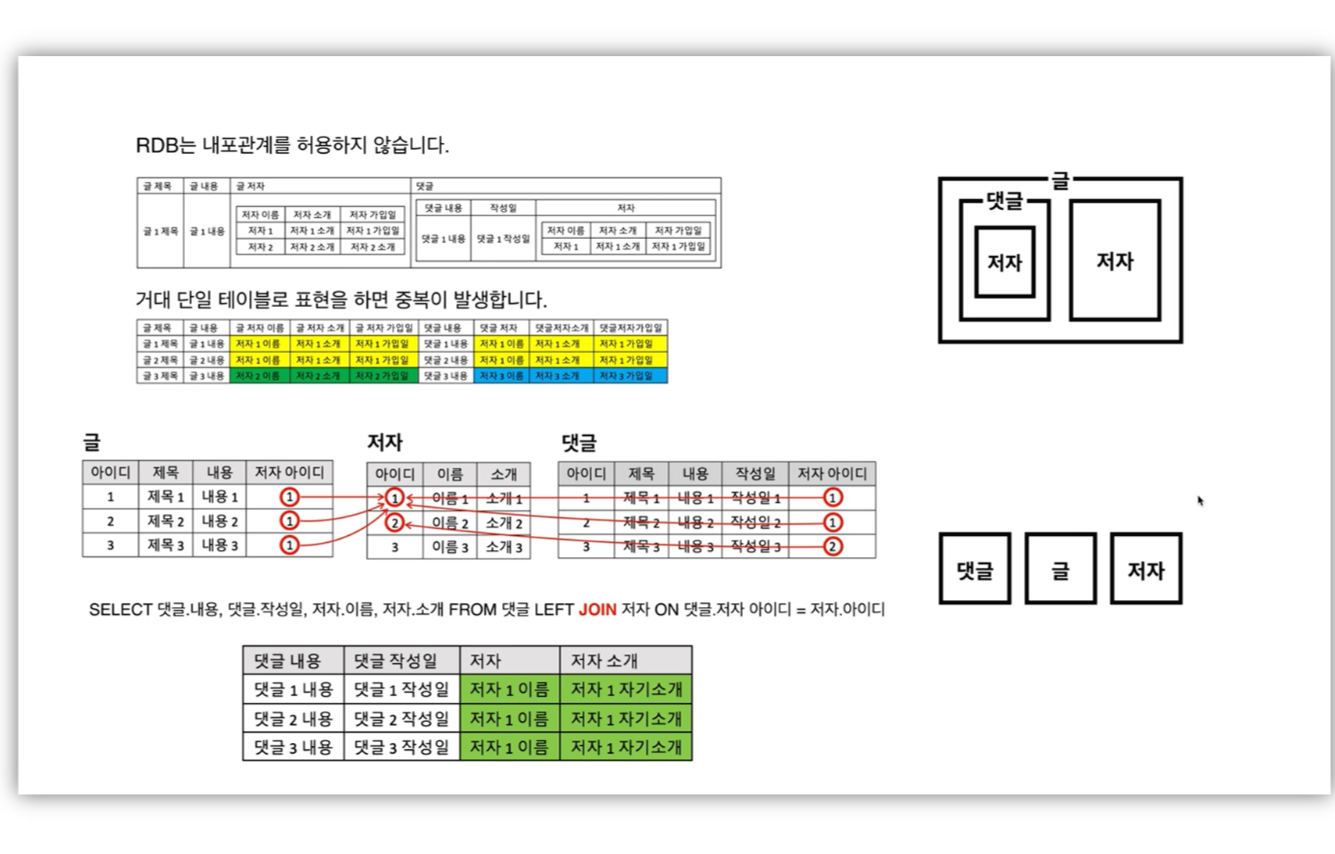 표 안에 다른 표가 내포된 것을 관계형 데이터베이스는 허용하지 않는다.