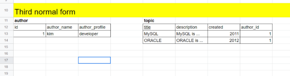 이로써 topic 테이블에 남은 모든 요소는 온전히 표(또는 하나의 key:title)에 종속적이 되었다.