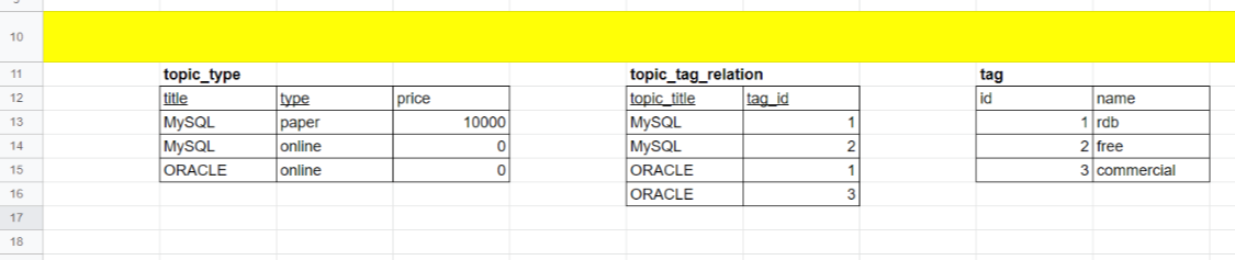 두 값을 묶어 'topic_tag_relation'이라는 표를 만들었다. 이 표가 일종의 Primary Key 역할을 하게 될 것이다.
